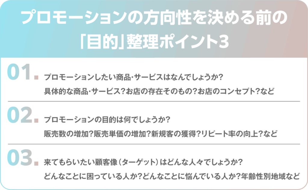【プロモーションの方向性を決める前の「目的」整理ポイント3】